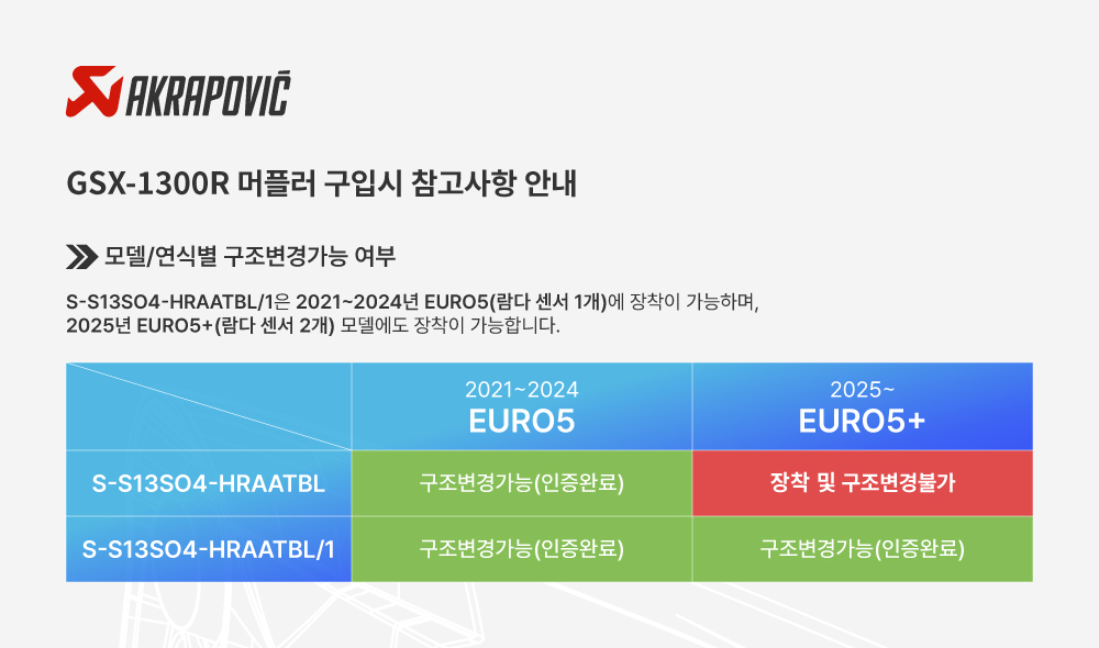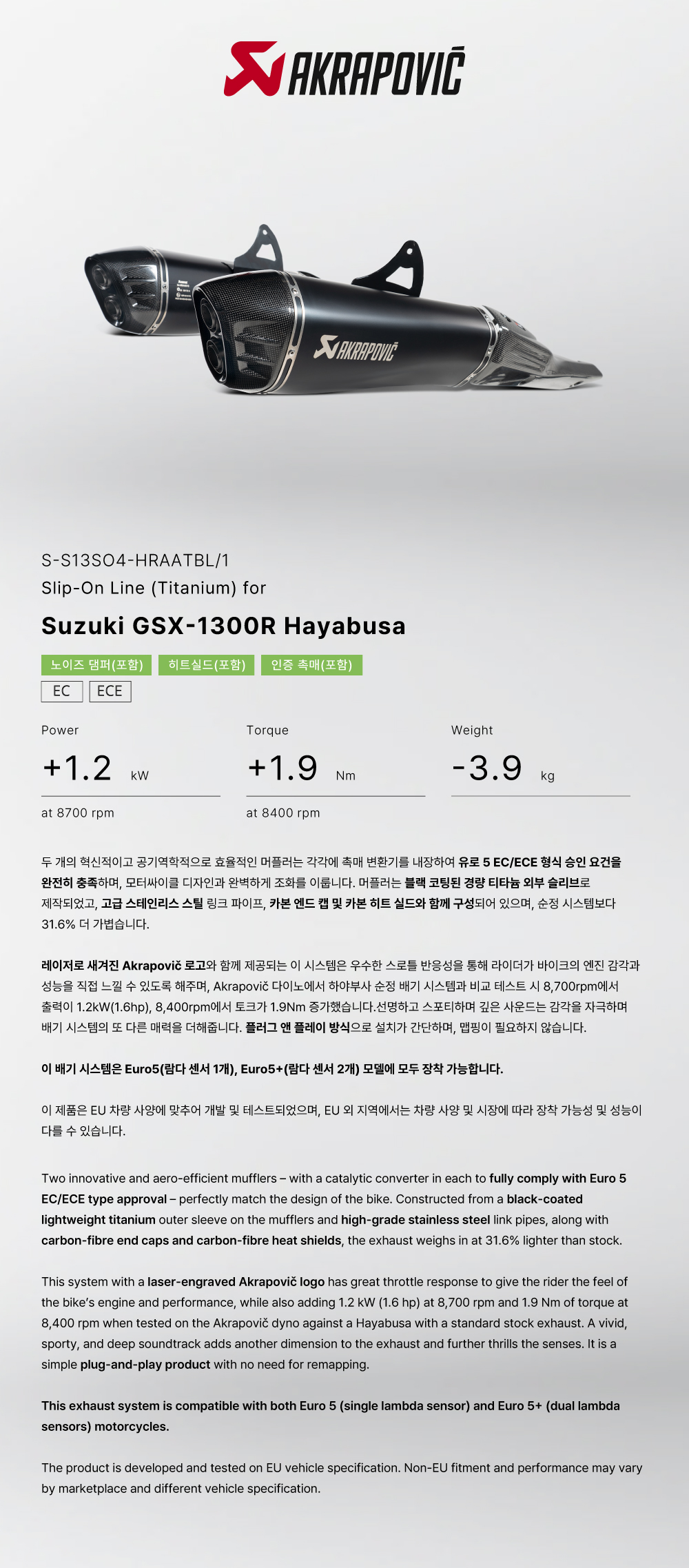 »óǰ¸í : ¾ÆÅ©¶óÆ÷ºò(Akrapovic) SUZUKI(½ºÁîŰ) GSX1300R(ÇϾߺλç) EURO5+ '21~'25 ¸ÓÇ÷¯ SLIP-ON TITAN BLACK(TWIN) S-S13SO4-HRAATBL/1 |