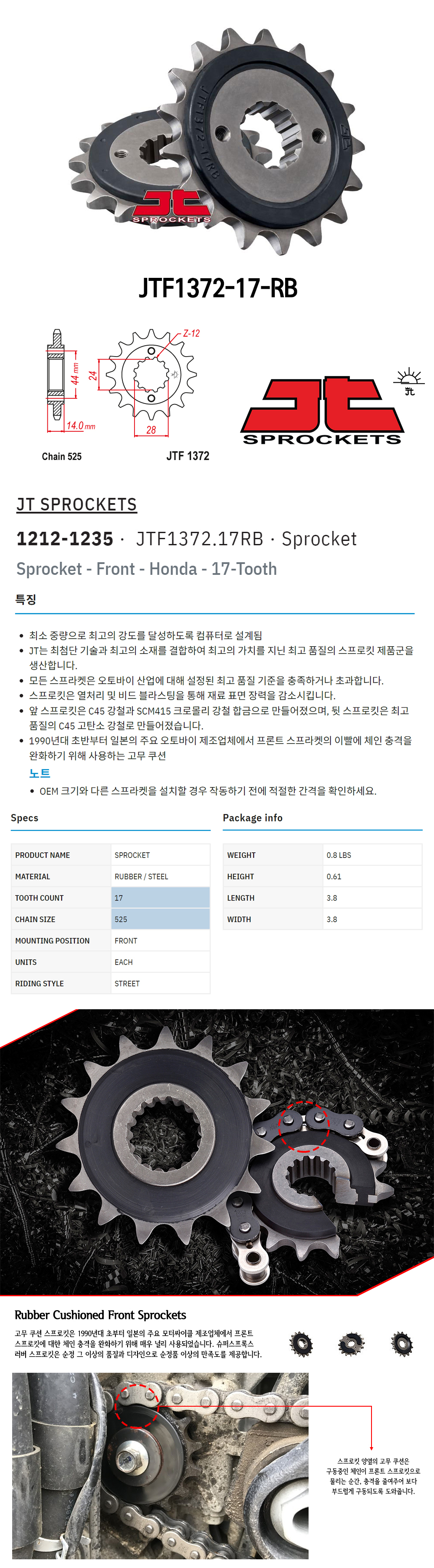 µå·¡±×½ºÆä¼È(DragSpecialties) JT Sprockets °í¹«´ïÆÛ ¼Ò±â¾î (Rubber Cushioned Front Sprockets) JTF1372-17-RB(1212-1235) |