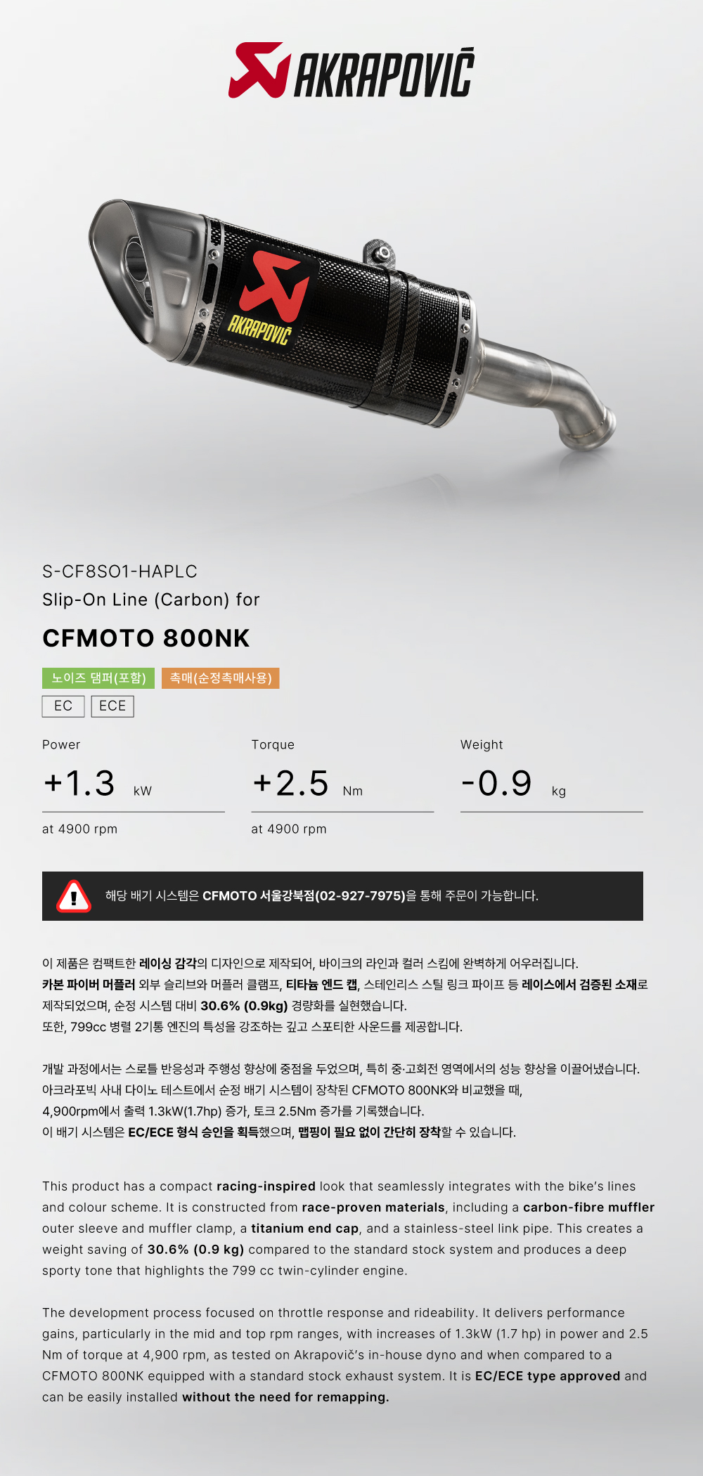 »óǰ¸í : ¾ÆÅ©¶óÆ÷ºò(Akrapovic) CFMOTO(¾¾¿¡ÇÁ¸ðÅä) 800NK '23~'25 ¸ÓÇ÷¯ SLIP-ON CARBON S-CF8SO1-HAPLC |