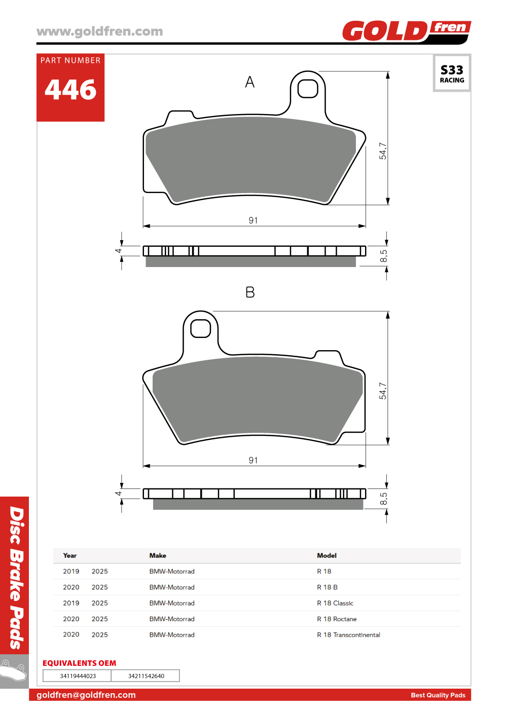 »óǰ¸í : Goldfren(°ñµåÇÁ·») Brake Pads (ºê·¹ÀÌÅ© ÆÐµå) G446-S33(=G443-S33) |