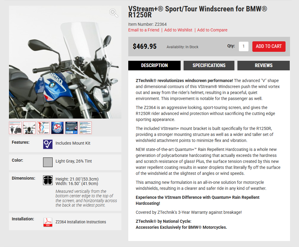 ZTechnik(Á¦Æ®Å×Å©´Ð) BMW R1250R '23~'24 VStream+¢ç Sport/Tour Windscreen - Light Gray, 26% Tint(ºêÀ̽ºÆ®¸² ½ºÆ÷Ã÷/Åõ¾î¸µ À©µå½ºÅ©¸° - ¶óÀÌÆ® ±×·¹ÀÌ) Z2364 |