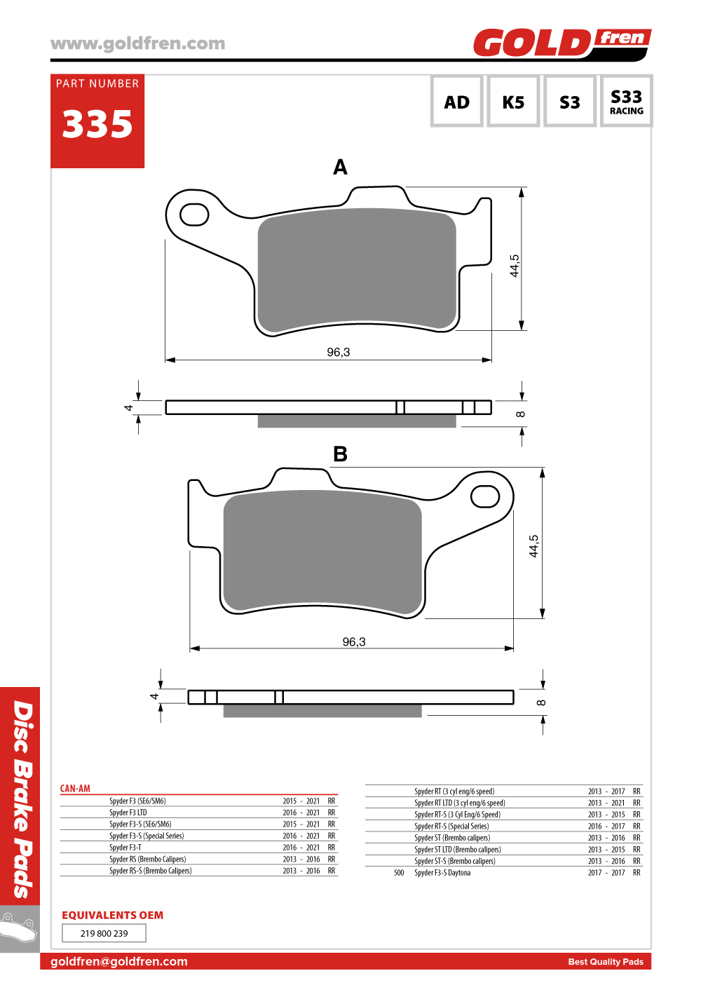 »óǰ¸í : Goldfren(°ñµåÇÁ·») Brake Pads (ºê·¹ÀÌÅ© ÆÐµå) G335-S33 |