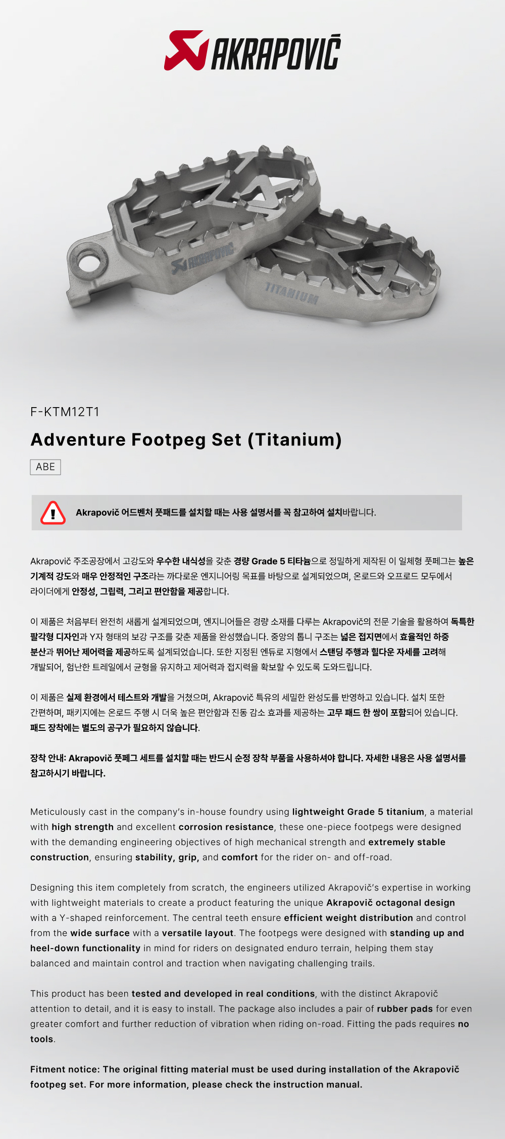 ¾ÆÅ©¶óÆ÷ºò(Akrapovic) KTM, Husqvarna, GASGAS ¾îµåº¥Ã³ DzÆä±× ¼¼Æ®(Adventure Footpeg Set)