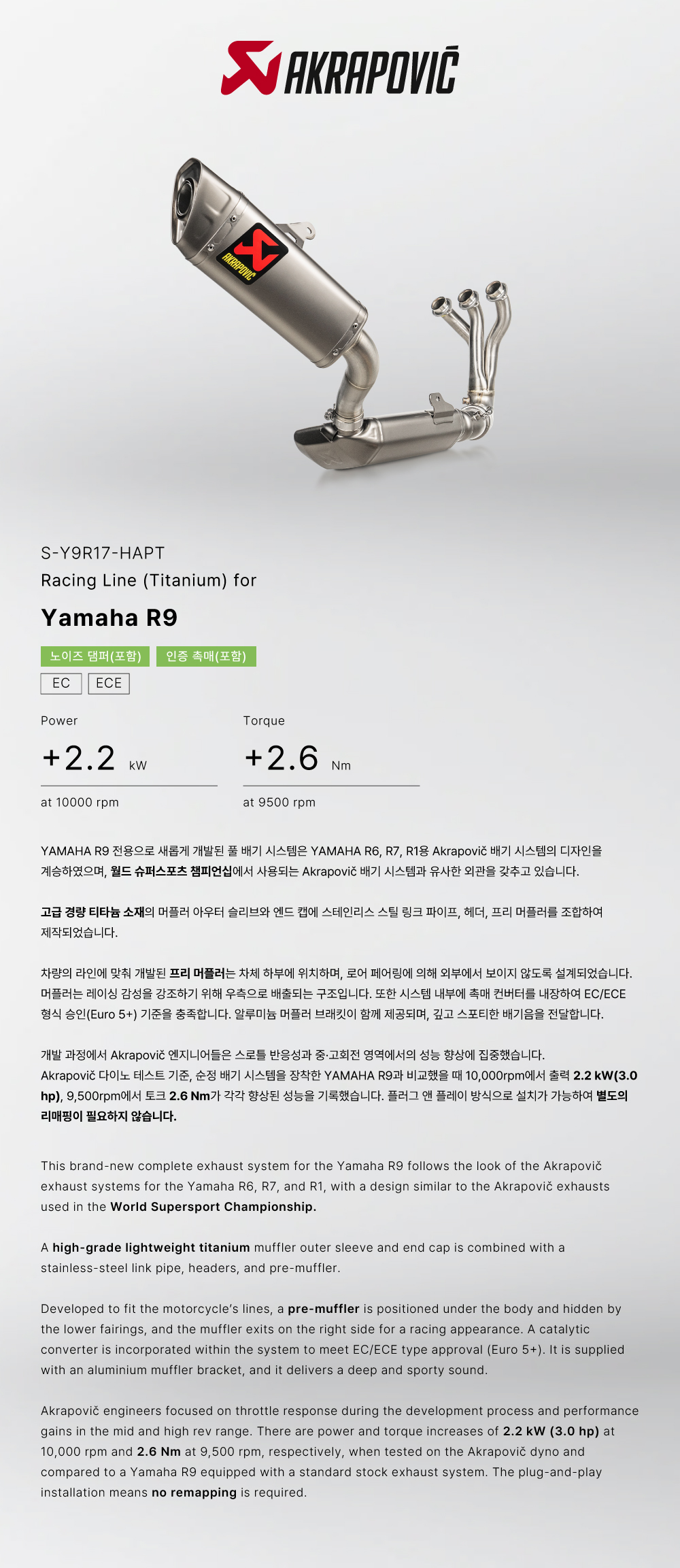 ¾ÆÅ©¶óÆ÷ºò(Akrapovic) YAMAHA(¾ß¸¶ÇÏ) YZF-R9 '25~'26 EURO5+ ¸ÓÇ÷¯ FULL SYSTEM TITAN (Racing-line) S-Y9R17-HAPT |
