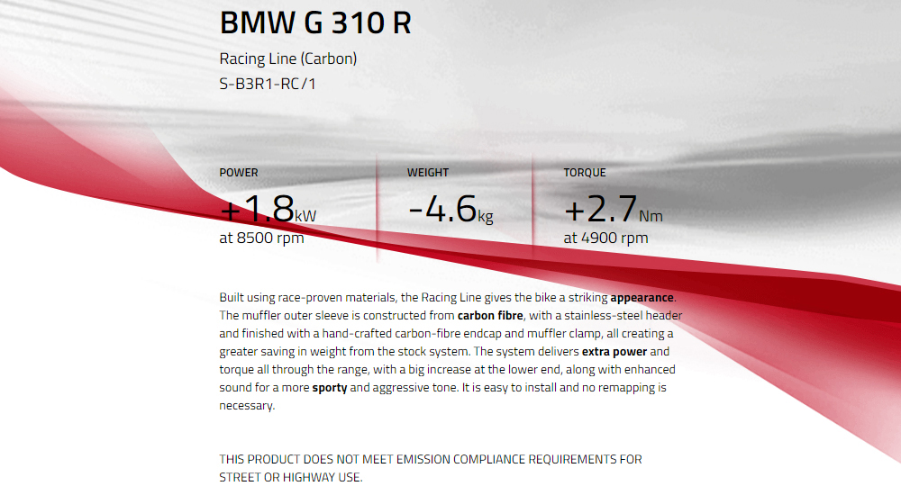 ¾ÆÅ©¶óÆ÷ºò(Akrapovic) BMW G310R '17~'24 ¸ÓÇ÷¯ FULL SYSTEM CARBON (Racing-line) S-B3R1-RC/1 |