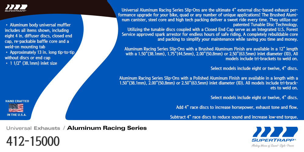 SUPERTRAPP(½´ÆÛÆ®·¦) Universal Aluminum Racing Series Slip-Ons - 1.5" (À¯´Ï¹ö¼È ¾Ë·ç¹Ì´½ ·¹ÀÌ½Ì ½Ã¸®Áî ½½¸³¿Â ¸ÓÇ÷¯ - ÀåÂøÁ÷°æ 1.5ÀÎÄ¡(38.1mm)) 412-15000