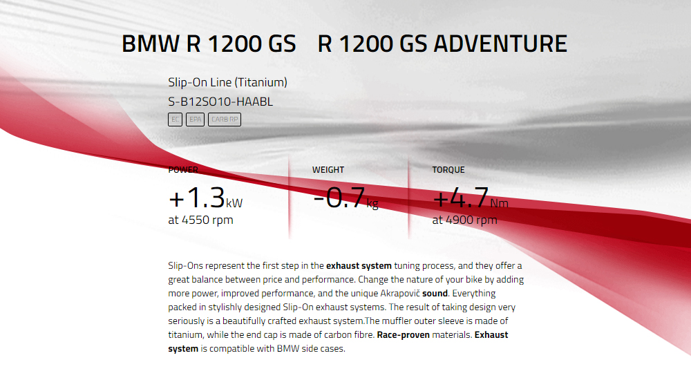 ¾ÆÅ©¶óÆ÷ºò(Akrapovic) BMW R1200GS '13~'16 ('17~'18 °¡´É)/ ADVENTURE '14~'16 ('17~'18 °¡´É) ¸ÓÇ÷¯ SLIP-ON TITAN BLACKS-B12SO10-HAABL