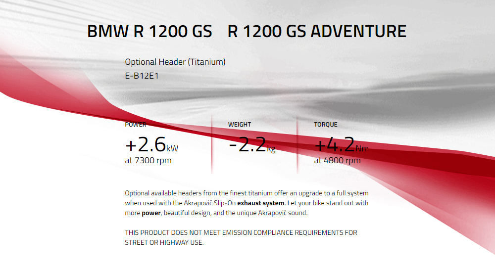 ¾ÆÅ©¶óÆ÷ºò(Akrapovic) BMW R1200GS '13~'18 / Adventure '14~'18 ¸ÓÇ÷¯ Header Pipe (Titanium) E-B12E1