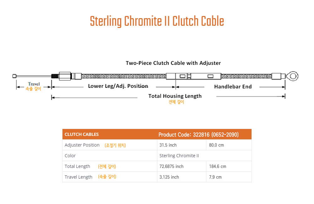 Magnum(¸Å±×³Ñ) Harley Davidson(ÇÒ¸® µ¥À̺ñ½¼) Sterling Chromite II Clutch Cable (Ŭ·¯Ä¡ ÄÉÀ̺í)184.6cm(7.9cm) 322816