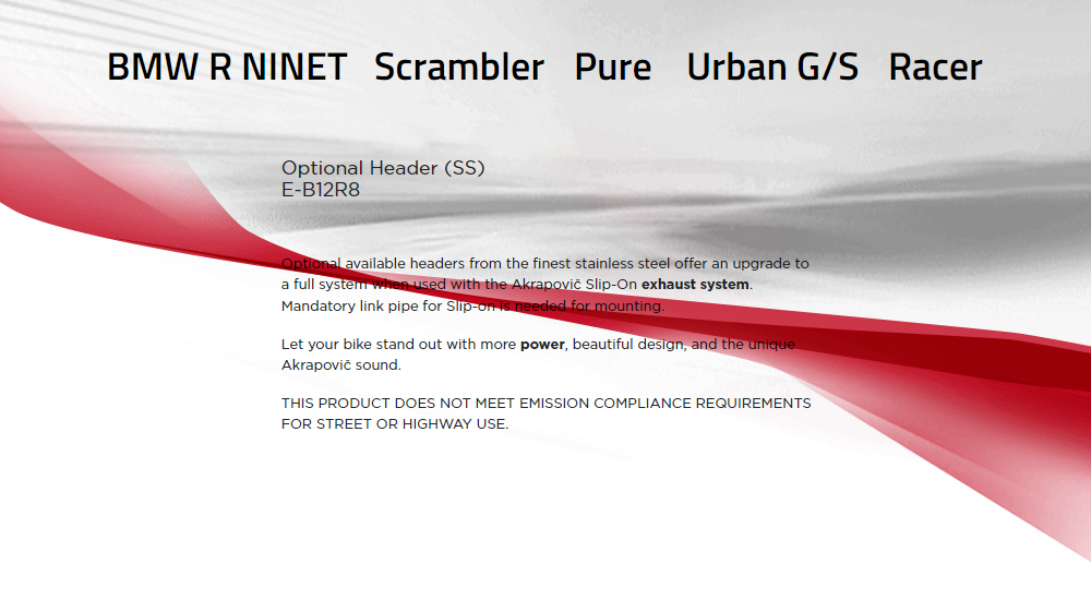 ¾ÆÅ©¶óÆ÷ºò(Akrapovic) BMW R NineT '21~'23 / R NineT Scrambler, PURE, URBAN G/S, RACER '21~'23 ¸ÓÇ÷¯ Header Pipe (Stainless Steel)