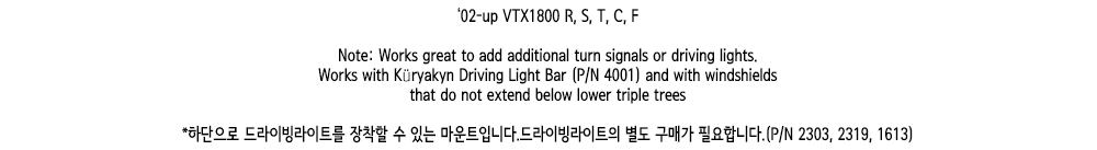 | »óǰ¸í : Äí¸®¾ßŲ(Kuryakyn) HONDA(È¥´Ù) VTX1800 Bottom Driving Light or Turn Signal Mounts (¹öÅÒ µå¶óÀ̺ù ¶óÀÌÆ® or ÅÏ ½Ã±×³Î ¸¶¿îÆ®) 2283 |