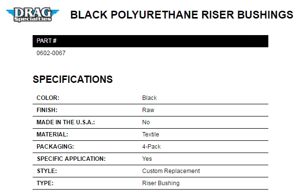 µå·¡±×½ºÆä¼È(DragSpecialties) ÇÒ¸® µ¥À̺ñ½¼(Harley Davidson) Black Polyurethane Riser Bushings (Æú¸®¿ì·¹Åº ¶óÀÌÁ® ºÎ½Ì) 0602-0067 |