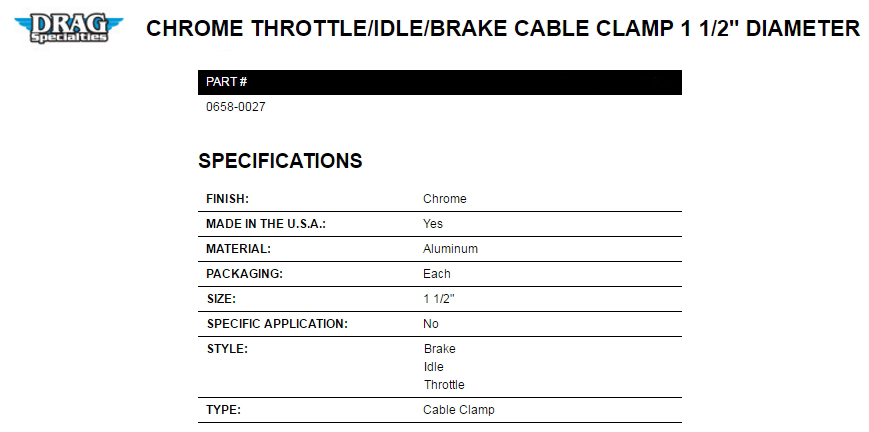 | »óǰ¸í : µå·¡±×½ºÆä¼È(DragSpecialties) Chrome Cable Clamp (Å©·Ò ÄÉÀ̺í Ŭ·¥ÇÁ 1+1/2 ÀÎÄ¡) 0658-0027 |