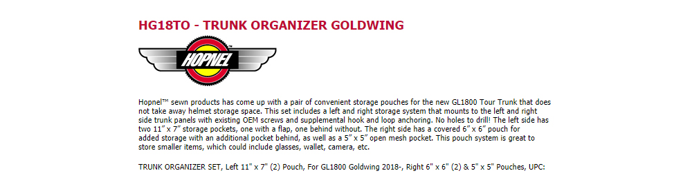 | »óǰ¸í : ºò¹ÙÀÌÅ©ÆÄÃ÷(Bigbikeparts) HONDA(È¥´Ù) GL1800 °ñµåÀ® Åõ¾î '18~'20 TRUNK ORGANIZER GOLDWING (Æ®··Å© ¿À°Å³ªÀÌÀú) HG18TO |