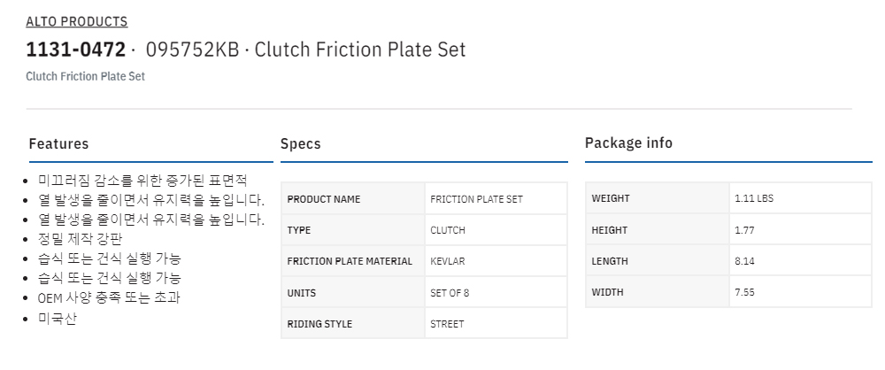µå·¡±×½ºÆä¼È(DragSpecialties) ALTO PRODUCTS(¾ËÅä ÇÁ·Î´öÆ®) ÇÒ¸® µ¥À̺ñ½¼(Harley Davidson) '90~'97 ´ÙÀ̳ª Clutch Friction Plate Set(Ŭ·¯Ä¡ µð½ºÅ© ¼¼Æ® 8Àå) 1131-0472 |